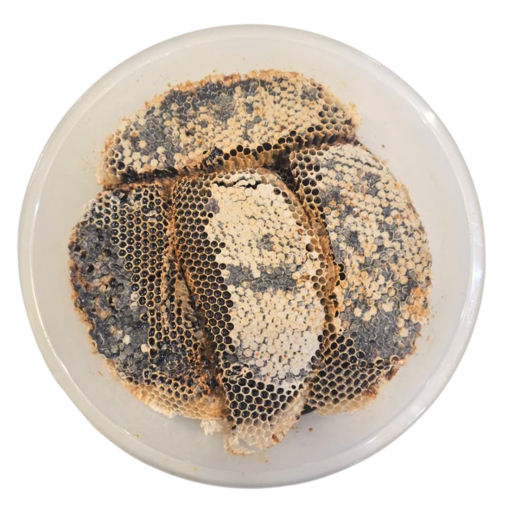 بمرور الوقت، يفقد العسل رطوبته ليصبح أكثر كثافة، وتركيزاً، وقوة. لونه الداكن الذي يميل للسواد يحكي قصة نضجه الطبيعي. قطعة واحدة من هذا الشمع تمنحك طعماً حاداً وأصيلاً، وفوائد صحية مركزة لا تجدها في العسل الحديث. إنه اختيار من يعرفون أن الأشياء الثمينة تستحق الانتظار.