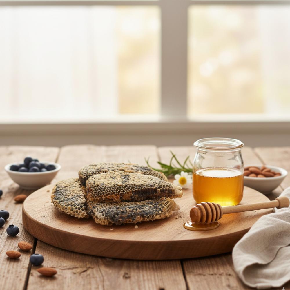 - غني بالإنزيمات وحبوب اللقاح (خبز النحل)